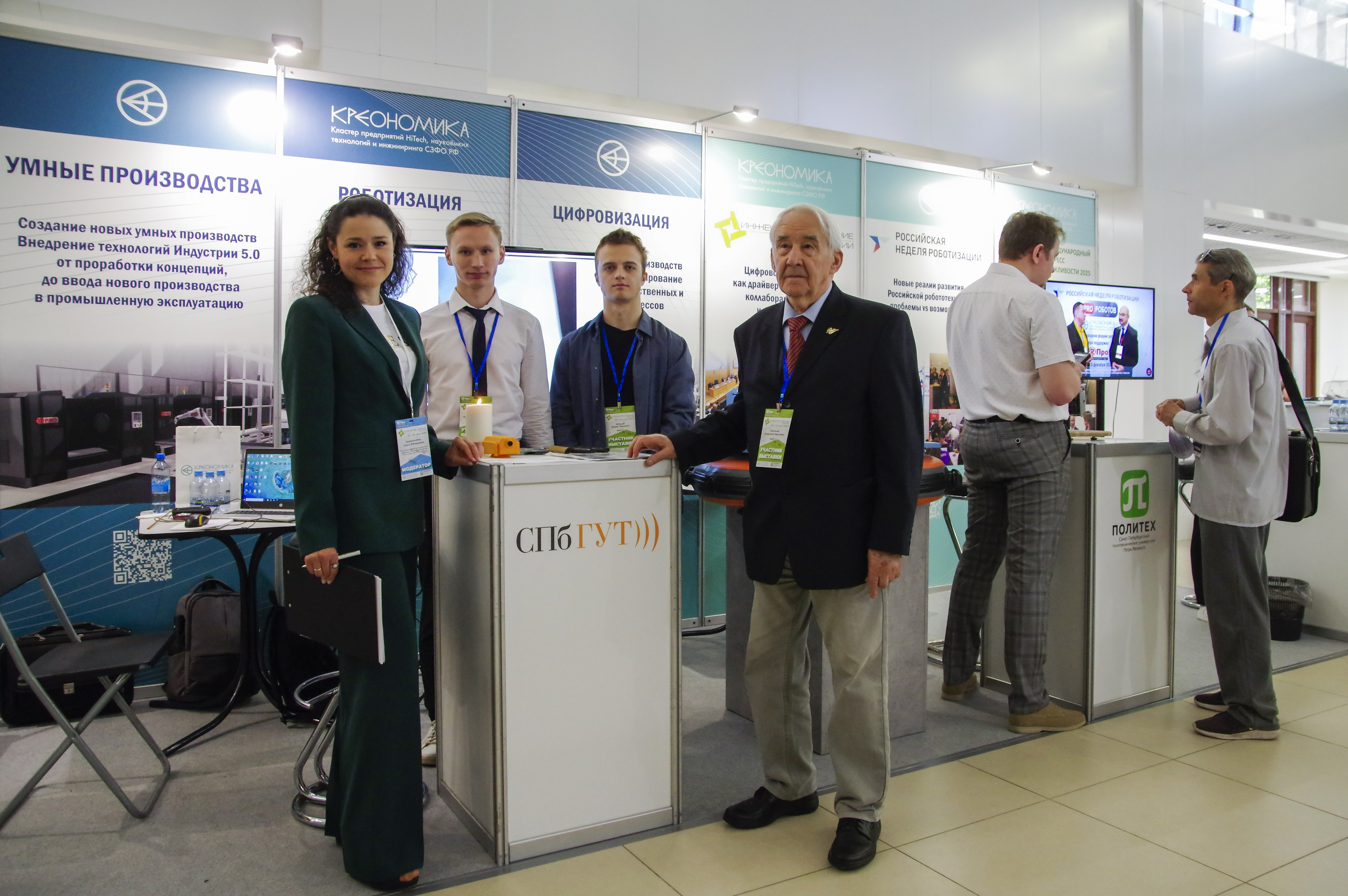 Всего в выставке было представлено 15 стендов. Среди участников выставки следует отметить Кластер Креономика, Институт Инновационных технологий в Бизнесе, Концерн R-про, коллективный стенд ОАО Савушкин продукт и ООО Системы промышленной автоматизации, СПбГАСУ, КУКА|Промышленная робототехника, ООО «АйтТиЛенлСофт», компания «КРАВТ», ООО «НПТК «Супротек», СПбГУТ, Санкт Петербургский политехнический университет Петра Великого, а также книжный партнер форума издательский дом ИНФРА-М и партнер воды «Воды здоровья».